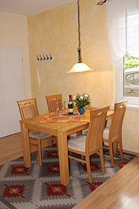 Austattung: - Hochwertige Einbauküche: (Cerankochfeld/Kühlschrank mit Gefrierfach/Mikrowelle/Geschirrspülautomat/Wasserkocher/Toaster/Kaffeemaschine) - Ess- und Couchtisch - Fernseher mit digitalem Satellitenempfänger + Digitalradio, DVD/CD-Player- Bad mit Dusche, WC, Fön und Handtuchtrockner - Terrassenmöbel aus Hartholz fürs Frühstück draußen - Eck-Couch zum Ausziehen (als Aufbettungsmöglichkeit) - getrennte Wohn- und Schlafräume |